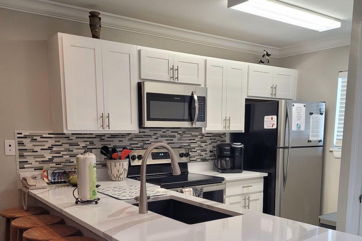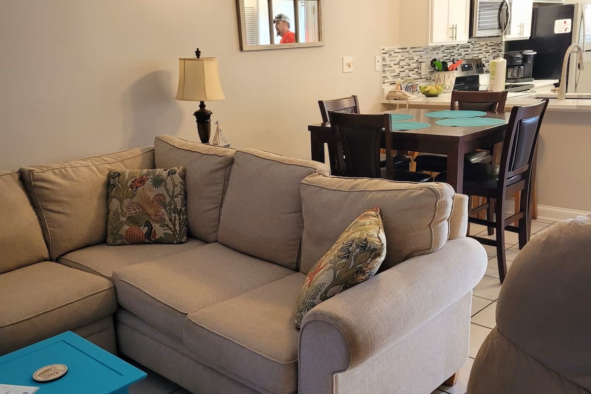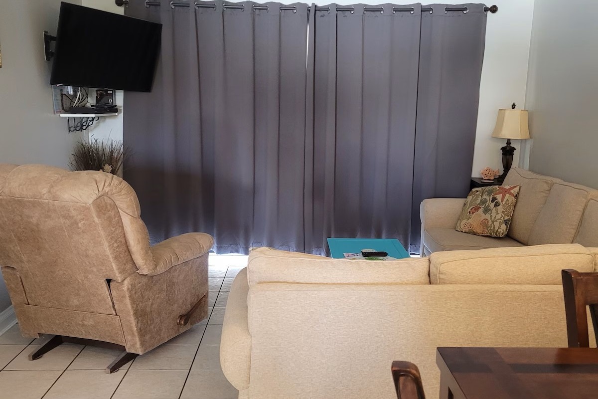 2 Bedrooms • Sleeps 3-6Located on Alabama's beautiful Orange Beach. This condo has been renovated. CHECK-IN 4 P.M. CHECK-OUT 10 A.M. Remodeled 2020/2021. Our complex is completely smoke free. We also include Kerig carafe and pod coffee maker, garbage disposal, blender, washer and dryer and much more. Balcony with table and chairs. This condo is located less than 10 minutes from Wal-Mart, amusement parks, restaurants, water parks, charter boats, fishing, sailing, shopping, movies, tennis, golf and more. Swimming pool has restroom access. Covered picnic area with grills. Covered parking area. Chairs and umbrella are available for rent on the beach. Condo is located on 2nd floor of building, next elevator. NO SMOKING AND NO PETS ALLOWED. There will be a $250 fee if it's discovered that our condo or balcony has been smoke in or on. All tenants must be 25 years or older unless you are with a parent. Anyone under the age of 25 can and will be escorted off the premises with no refund. If you are going to need a 2nd parking pass we will have to know this before your 1st payment is made.